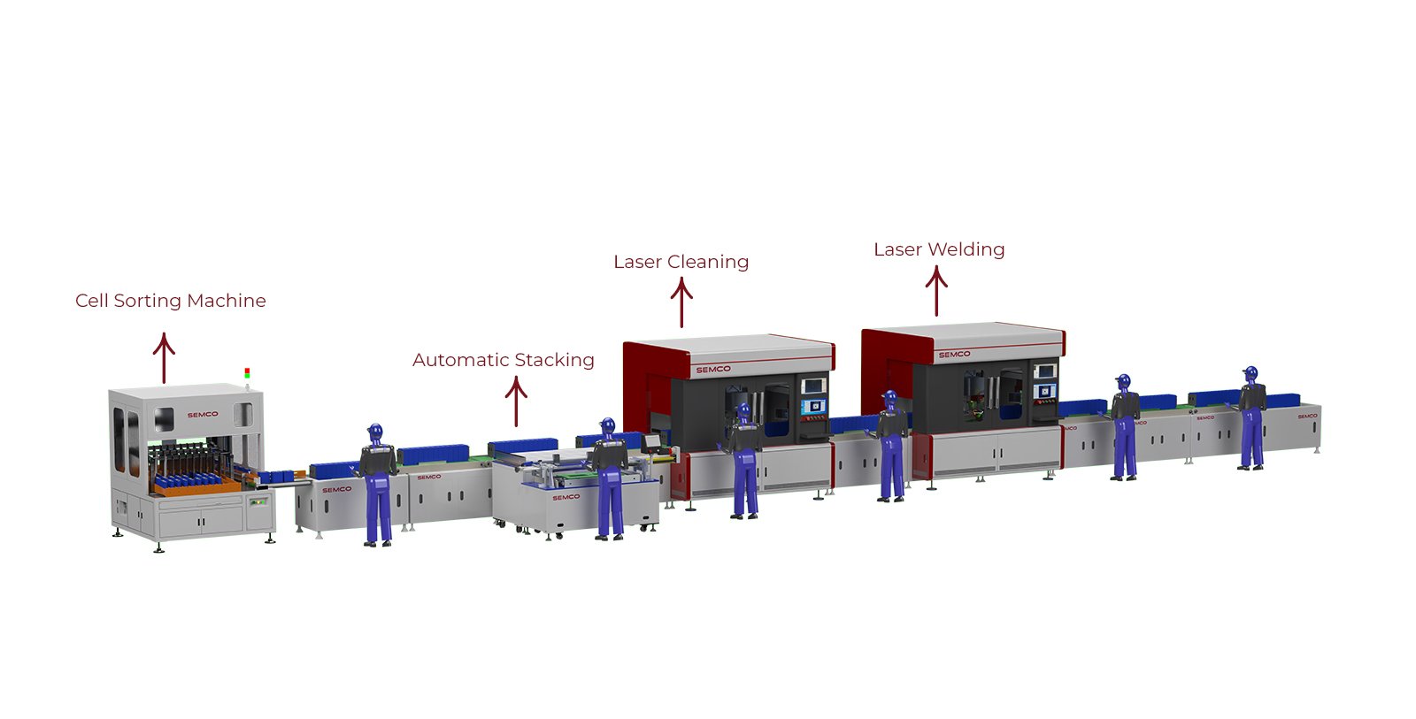 The Prismatic Semi-Automatic – 2 Terminal Assembly Line is designed to deliver an optimal balance between advanced automation and investment efficiency for lithium battery manufacturers. Built around dual-terminal processing, the line integrates precision laser welding, laser cleaning, CCD inspection, extrusion assembly, and comprehensive testing within a compact, semi-automated layout.