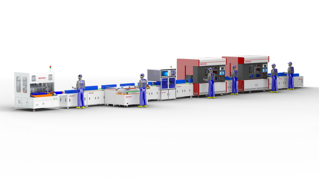 The Pack Line integrates final assembly, enclosure installation, and testing for scalable battery production.